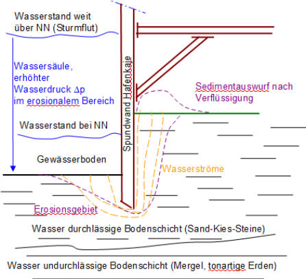 sehr gering so kann es zu einem plötzlich landseitigen Sedimentauswurf kommen.